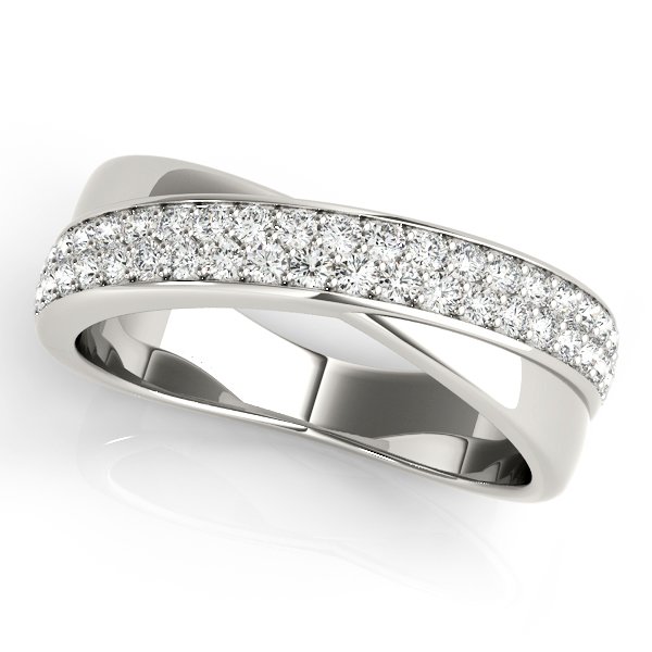 WOMENS TWO ROW TWISTED DIAMOND WEDDING BAND in 14K White Gold